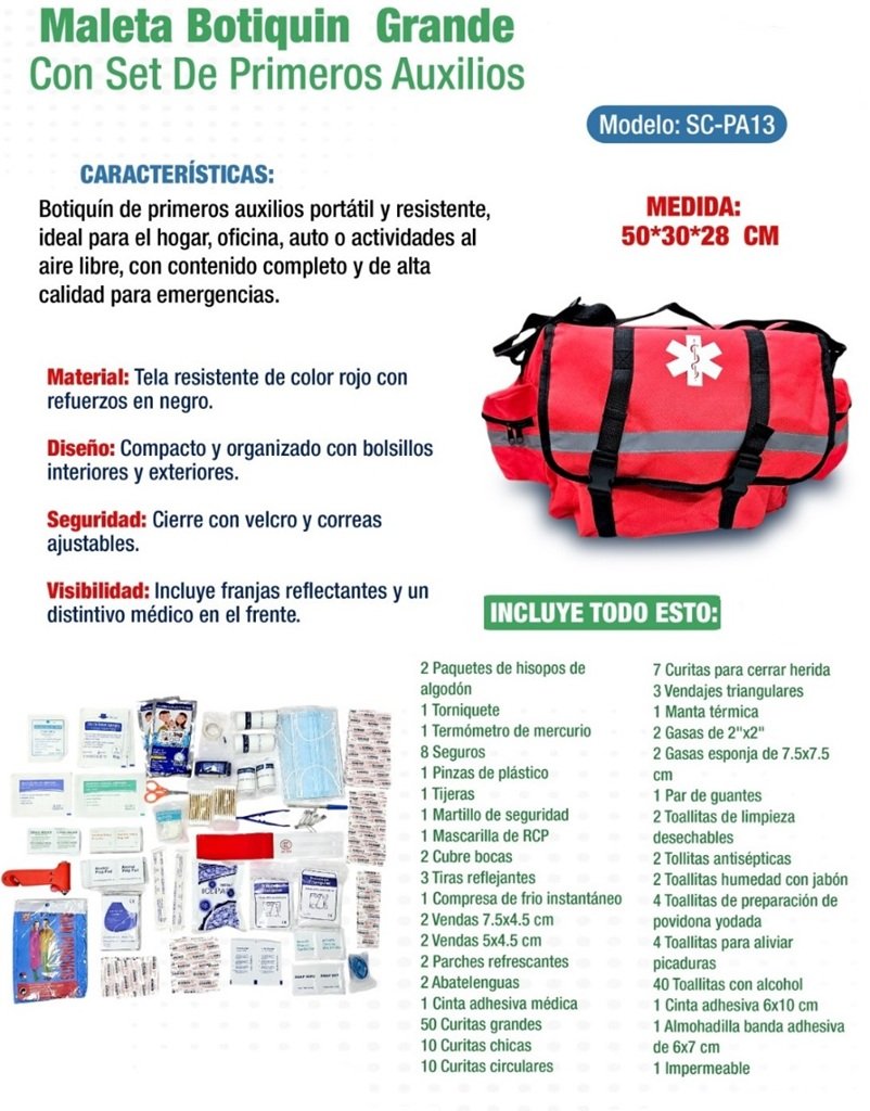 INCLUYE SET DE PRIMEROS AUXILIOS